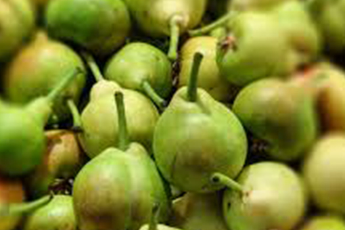 Pera de tamaño pequeño, destaca por sus tono amarillo, verdoso y rojizo. Cuenta con una piel fina y crujiente con un interior jugoso y refrescante. Es una fruta rica en agua, fibra, contiene vitaminas del grupo B y C, ácido fólico y minerales, como magnesio, fósforo, calcio y potasio.